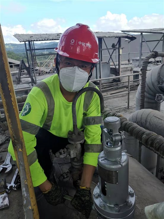 2020年由于突發(fā)的新冠疫情,菲律賓實施航空管制和閉關政策,正在國內短暫休假的苗玉民被通知不能返回菲律賓。得知消息后,苗玉民心急如焚,甚至自責的認為,如果不回來休假就好了。為了保證電站安全運營,苗玉民一邊與現(xiàn)場菲籍員工視頻通訊,反復叮囑電站操作細節(jié),指導生產(chǎn)運營,一邊遠程安排電站員工做好疫情防控工作,確保生產(chǎn)、防疫兩不誤。同時積極與當?shù)刂薪闄C構聯(lián)系辦理返回菲律賓的外交批文。他始終保持24小時待機,生怕錯過任何一條有效信息。此時對他來說,前往每天確診病例高達2萬的菲律賓不可怕,不能立刻回到現(xiàn)場才最讓他忐忑不安。終于,在一年的積極努力下,2021年3月,所有赴菲的批文、背書等材料準備齊全。苗玉民迫不及待的拎著他早已準備好的行李箱,帶領5人團隊重新起航,返回菲律賓子公司現(xiàn)場。